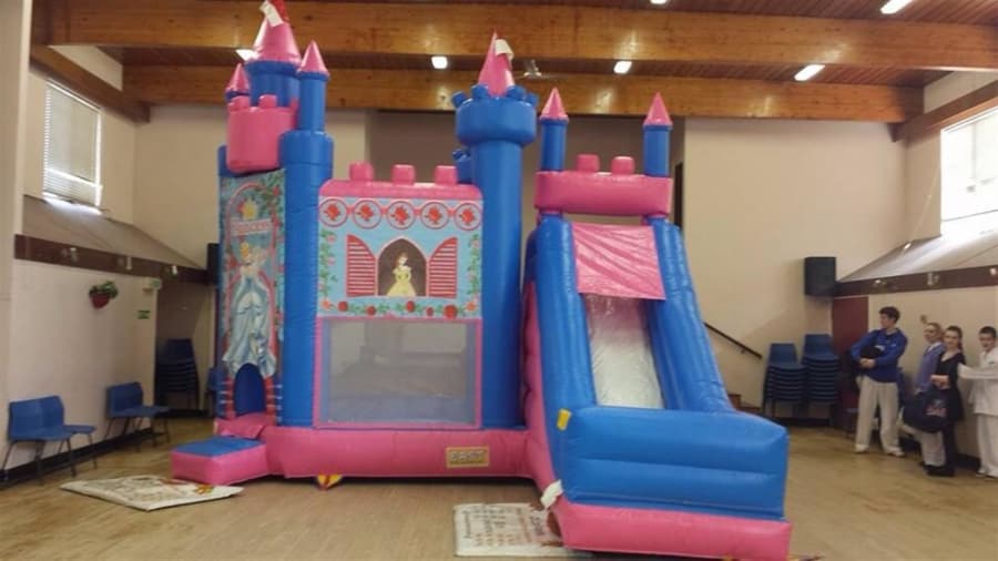 Huge Large Princess castle, features large slide, basketball hoop and big bouncy area.