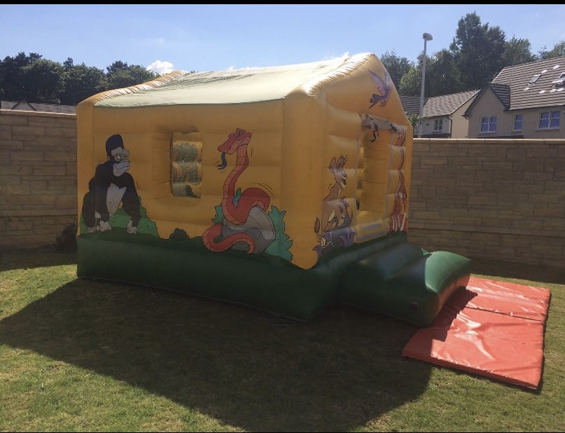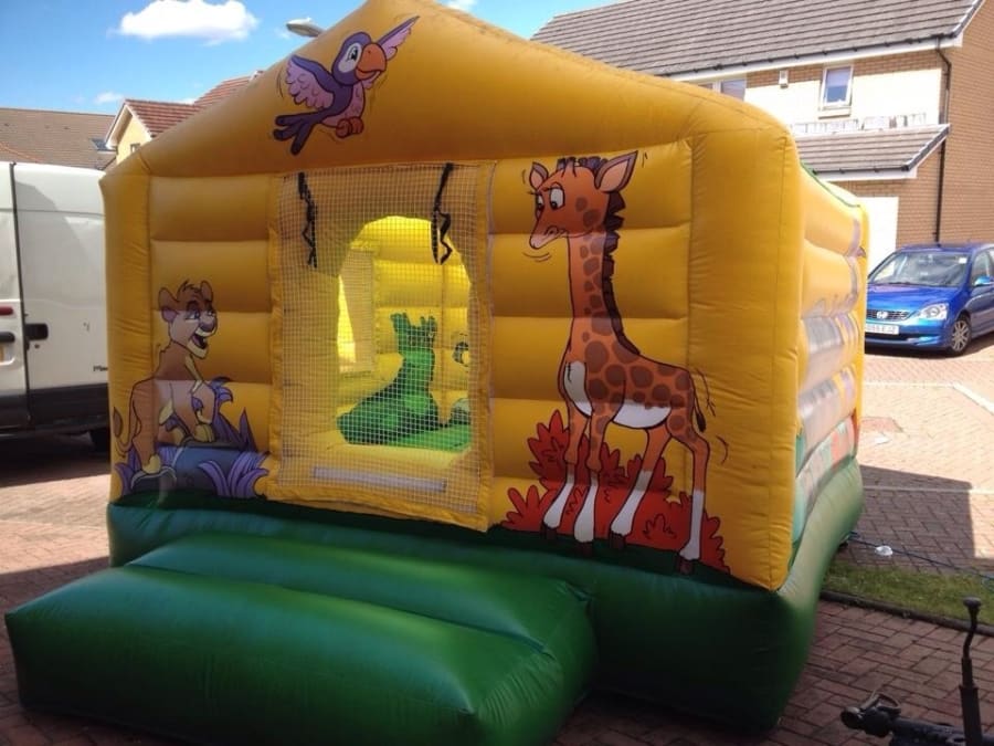 All enclosed Safari house bouncy castle strictly for INFANTS ONLY 12x12 ft Let your little ones go free in our Safari house bouncy castle with amazing art work of all our Safari animals your little ones imagination can run wild while you can safely see them from window or door of the castle. The mesh door can be rolled up and left open or roll down to close hours of fun can be had with our amazing Safari house castle.